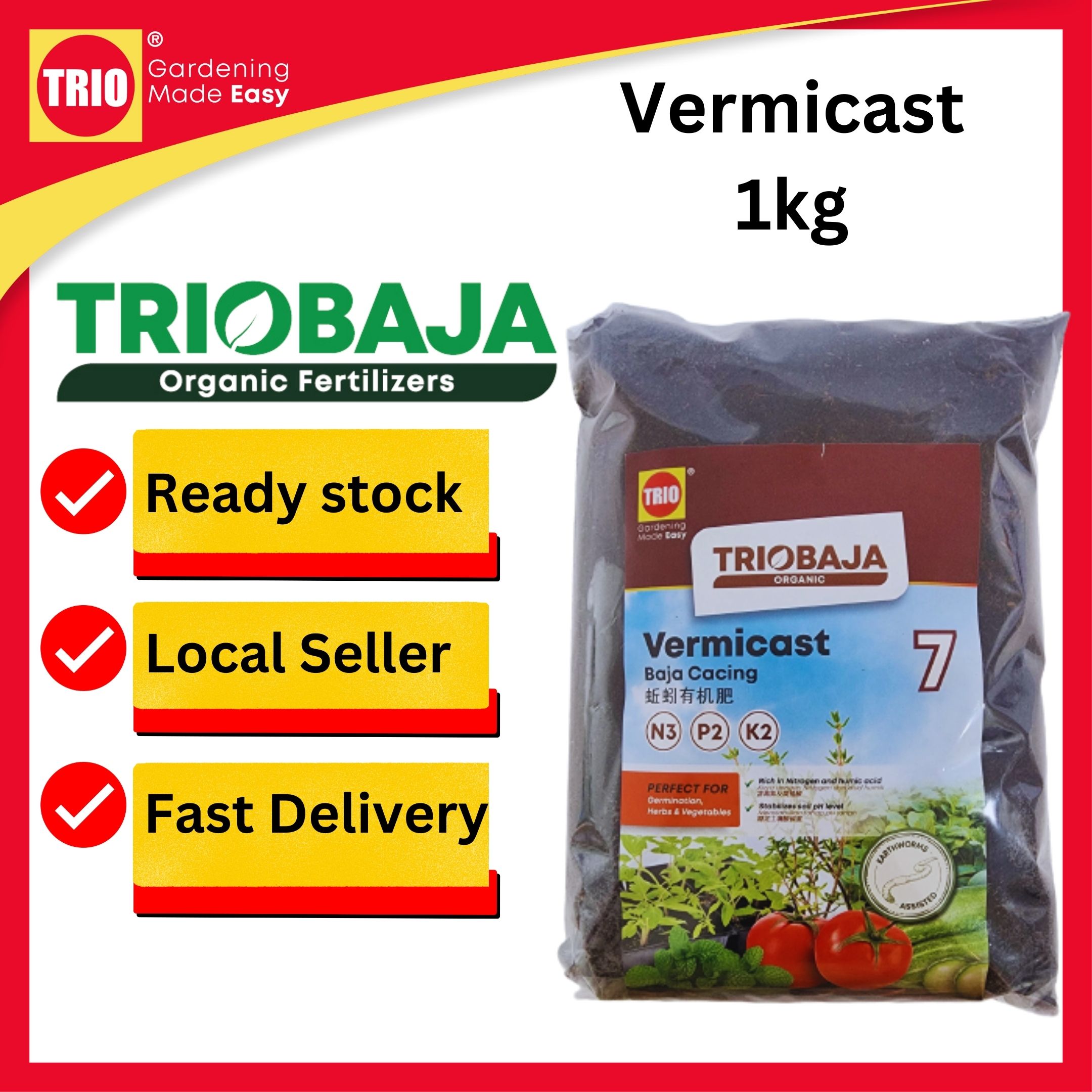 / TRIOBaja Vermicast Organic Fertilizer/ TRIOBaja Organik Cacing/ 蚯蚓有机肥 – 1kg